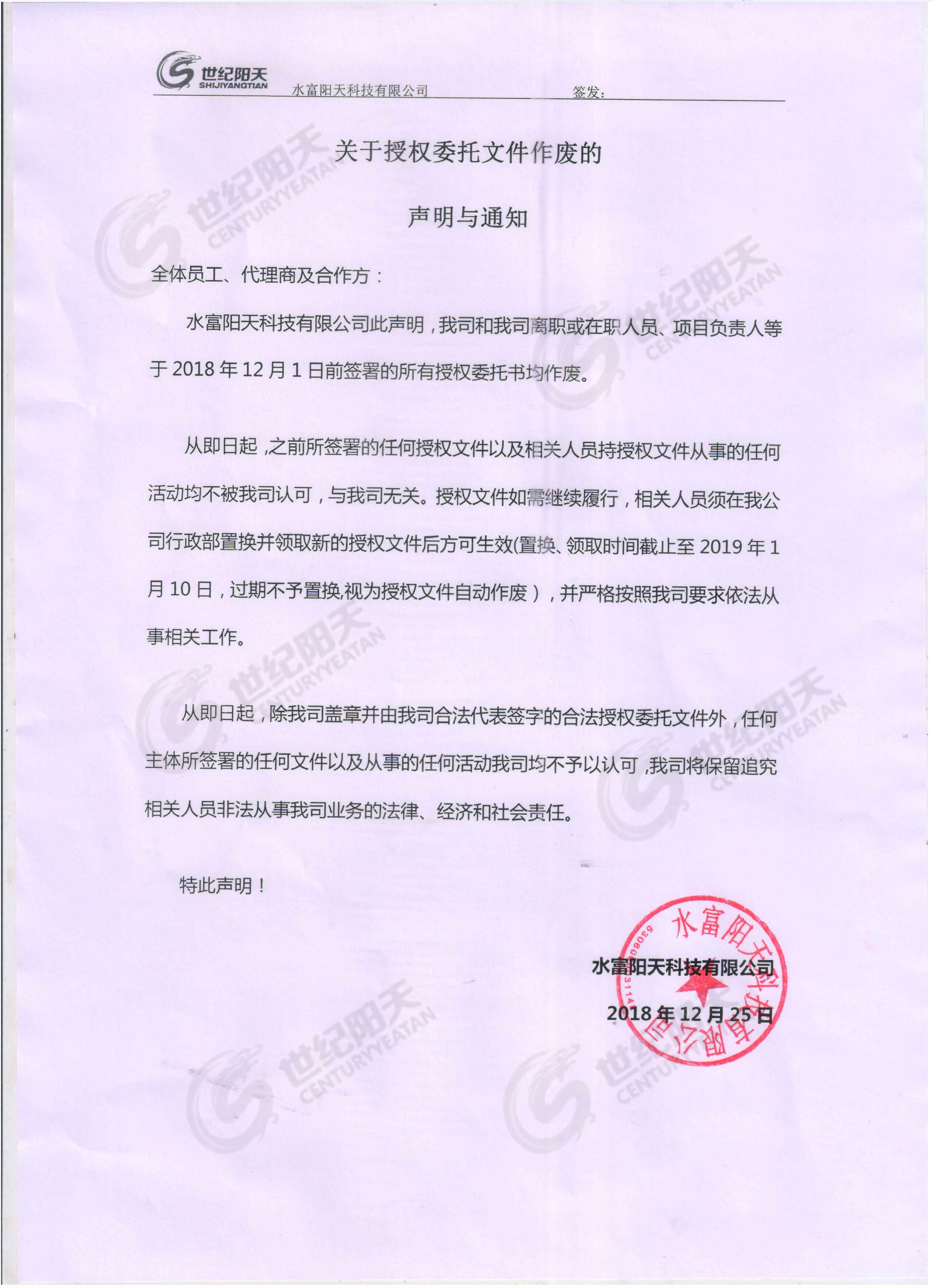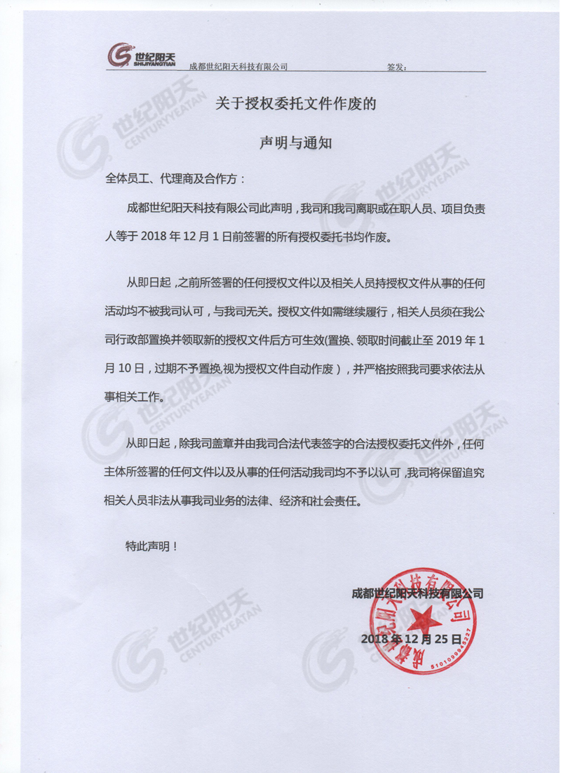 2018.12.25 [實(shí)時(shí)公告] 發(fā)布者:世紀(jì)陽天 瀏覽次數(shù):1386