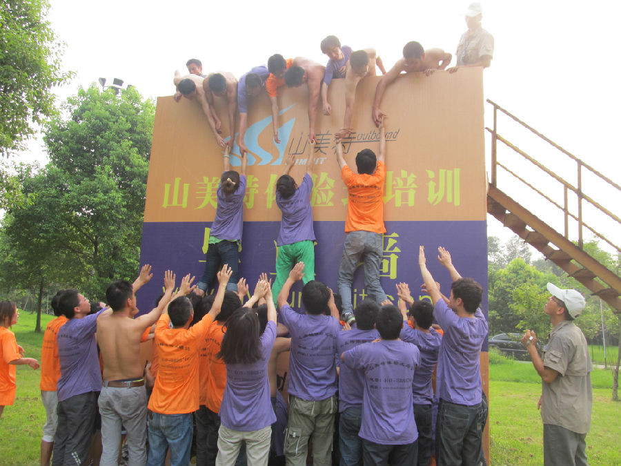 最后一個(gè)項(xiàng)目“畢業(yè)墻”,是由兩組團(tuán)隊(duì)共同完成的任務(wù), 期間,團(tuán)隊(duì)中很多閃光點(diǎn)在這個(gè)項(xiàng)目中都體現(xiàn)得淋漓盡致。為了能讓隊(duì)員登上畢業(yè)墻而被踩在腳下的“人梯”,不遺余力把每名隊(duì)員拉上畢業(yè)墻的“拉手”,在后面做著安全保護(hù)的“后盾”……除這既定的這些角色,團(tuán)隊(duì)的每一名伙伴都在主動(dòng)承擔(dān)著責(zé)任,上去的隊(duì)員看到“拉手”拉不動(dòng)而主動(dòng)伸出的雙手;為了不讓“人梯”太累,下面等待的隊(duì)員有的高舉雙手做著保護(hù),有的也貢獻(xiàn)著自己的肩膀讓隊(duì)友踩在腳下;甚至有的隊(duì)友沒有踩對(duì)正確的位置,而把被踩人的肩膀都踩掉皮了,但被踩者沒有一句怨言;有的隊(duì)友甚至用自己的腿和手臂當(dāng)起了梯子……為了隊(duì)友的安全,為了團(tuán)隊(duì)的目標(biāo),世紀(jì)陽天的男女同事不分彼此奉獻(xiàn)著自己的力量和智慧……現(xiàn)場(chǎng)的一起,讓每位參訓(xùn)人員都為之感動(dòng),而在這一刻的感動(dòng)更是我們平常工作中所看不到的,原來我們是如此的團(tuán)結(jié)一心!