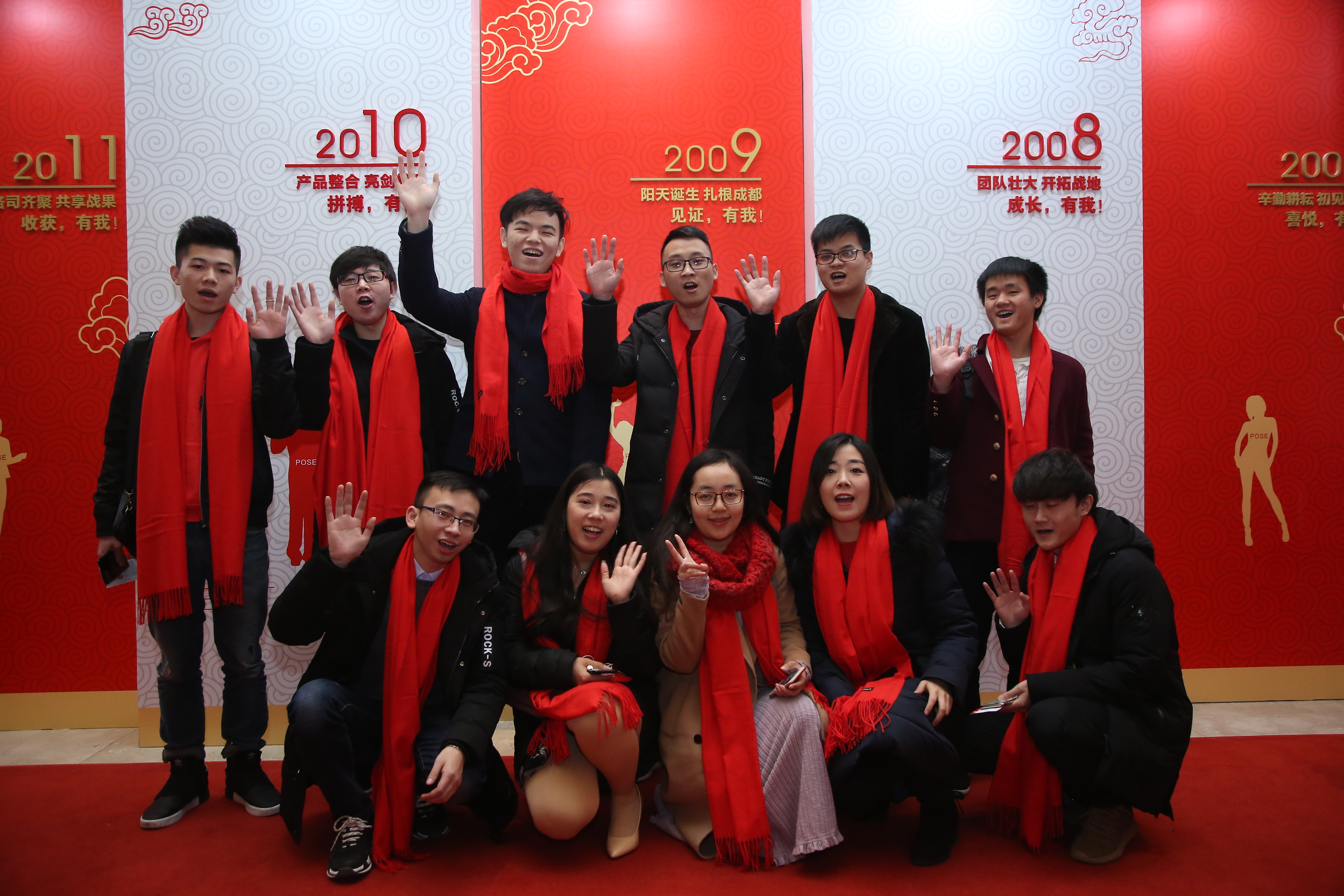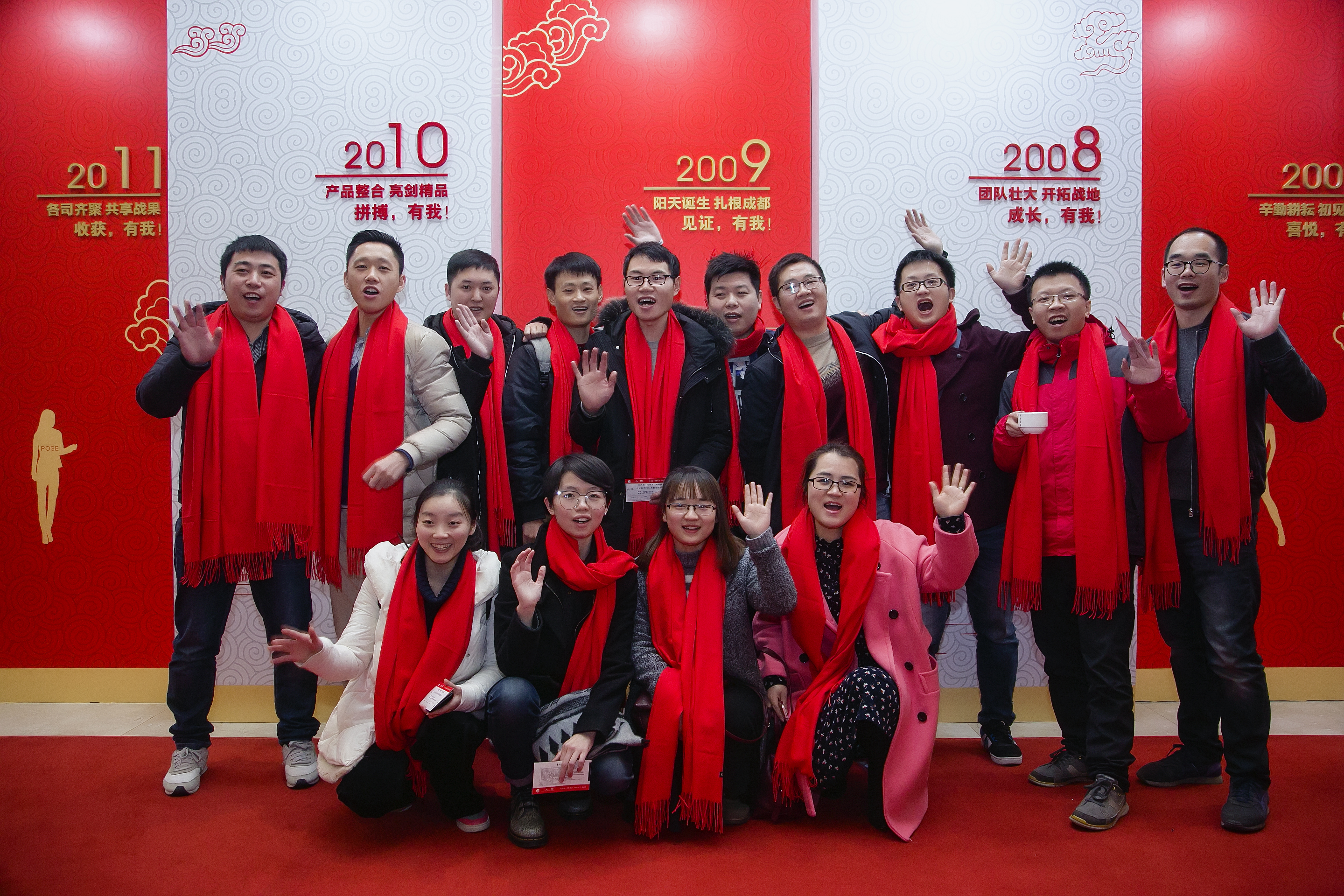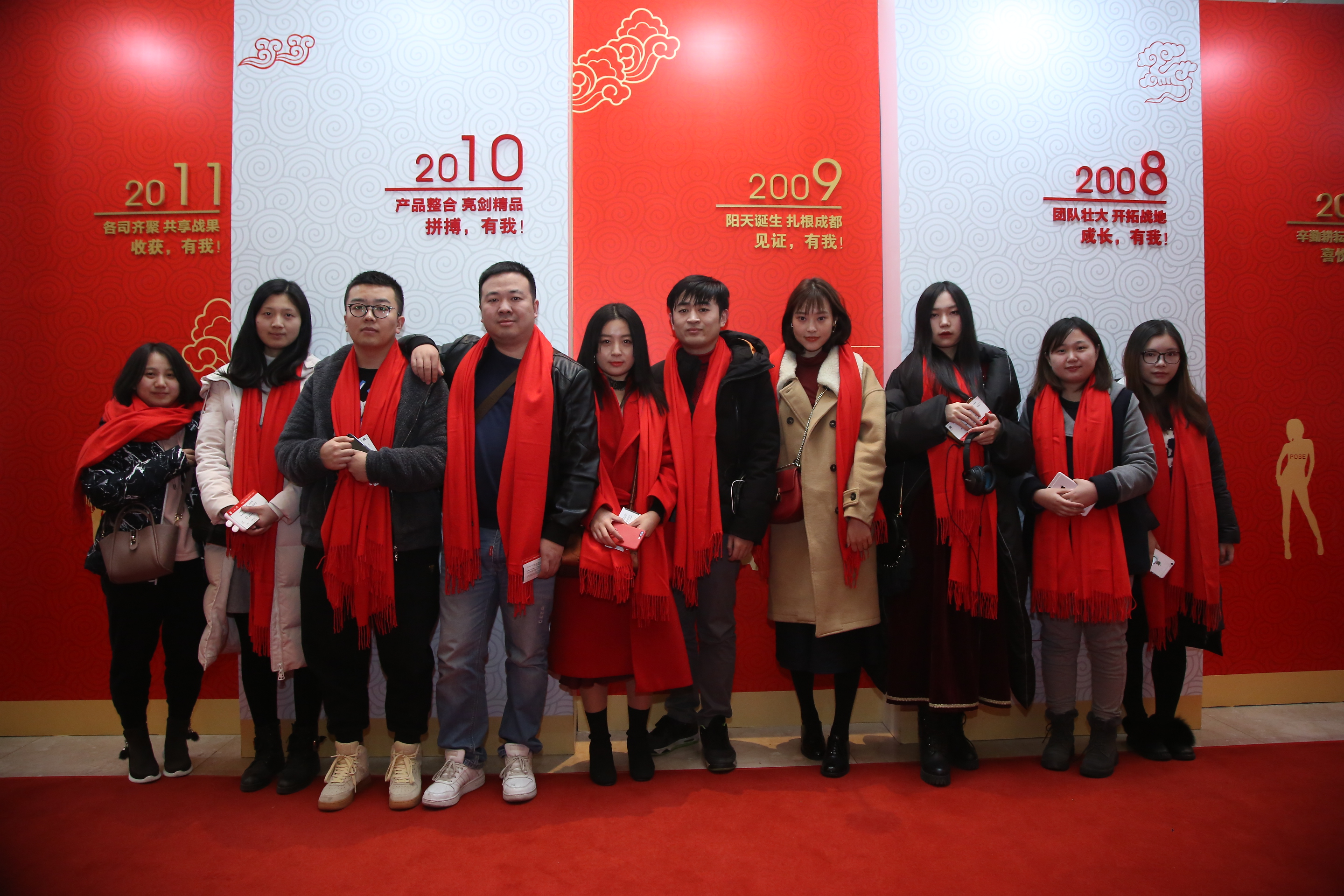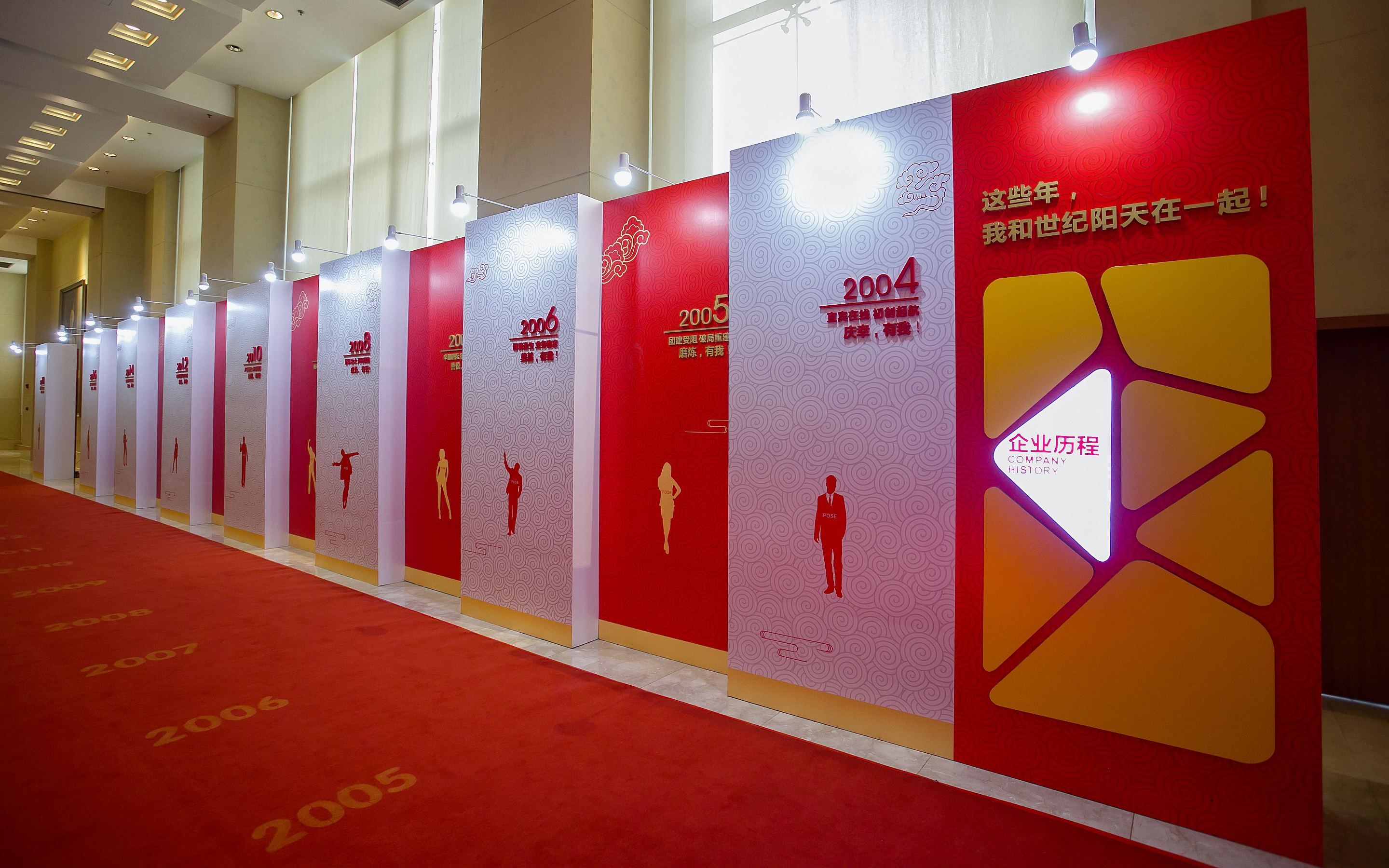 踏著紅地毯進(jìn)入宴會(huì)廳,右手邊便是以“這些年 我和世紀(jì)陽(yáng)天在一起”為中心的企業(yè)文化墻,從2004年宜賓在線初創(chuàng)起航;到2009年世紀(jì)陽(yáng)天誕生,扎根成都;再到2014年全國(guó)跨步,立足成都;2018年輝煌續(xù)寫(xiě),進(jìn)無(wú)止境……近14年的企業(yè)歷程,展現(xiàn)了世紀(jì)陽(yáng)天腳踏實(shí)地、茁壯發(fā)展、昂首前進(jìn)地信心與決心。